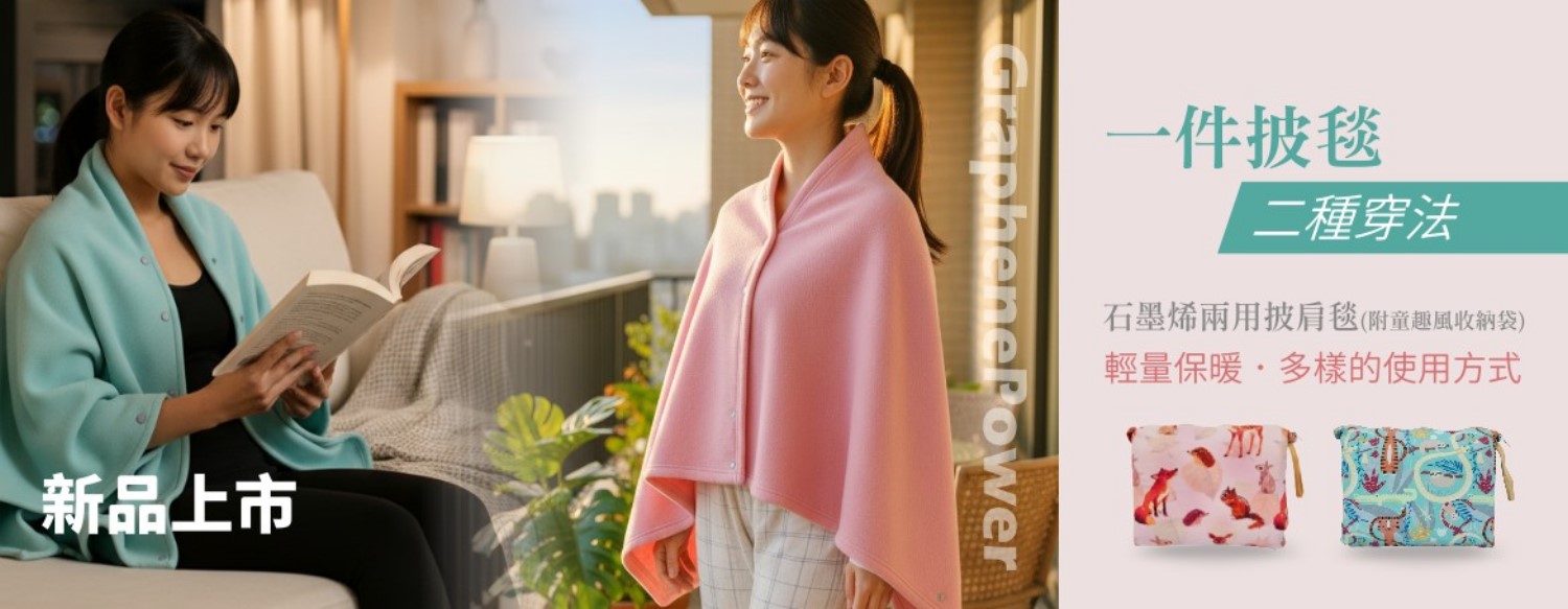【GraphenePower】石墨烯輕便兩用披肩毯(附收納袋)-粉紅