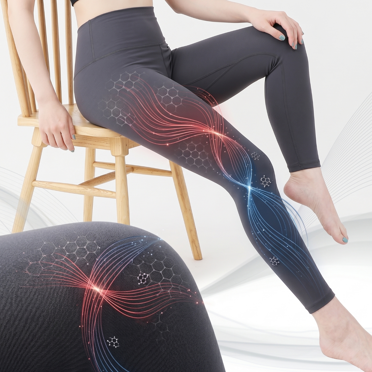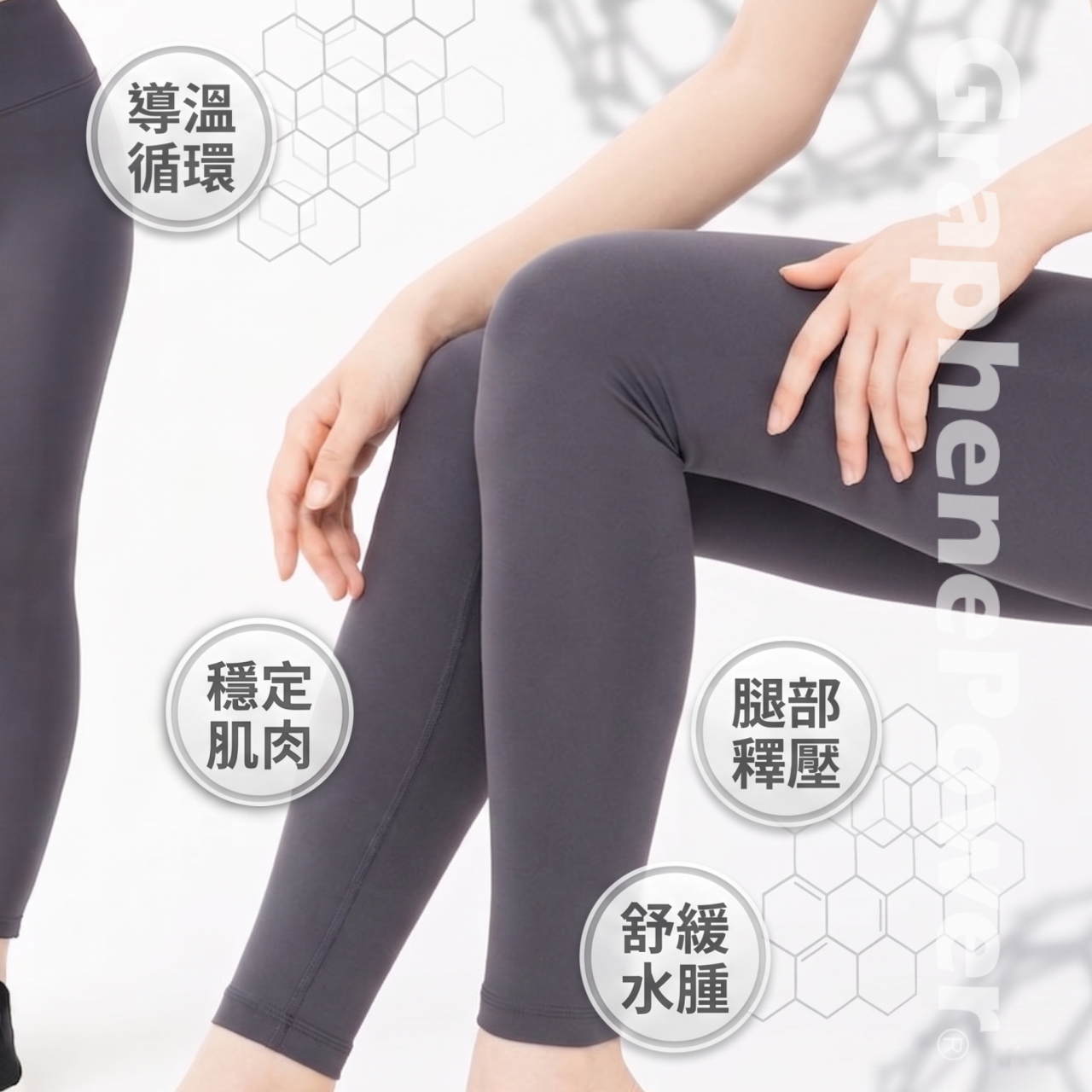 石墨烯所釋放的遠紅外線能與人體產生共振吸收,活絡細胞並促進血流速度,進而緩解腿部負擔。