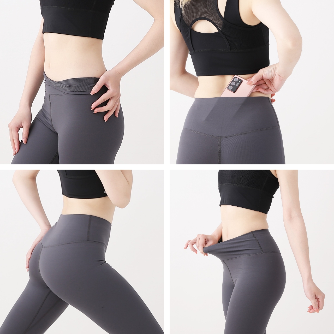 📱 後腰配置「隱形口袋」可收納手機小物,內裁片設計完美修飾尷尬線條。