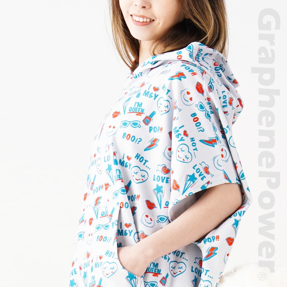【GraphenePower】石墨烯多功能連帽斗篷/毛巾衣(大人款)-塗鴉風